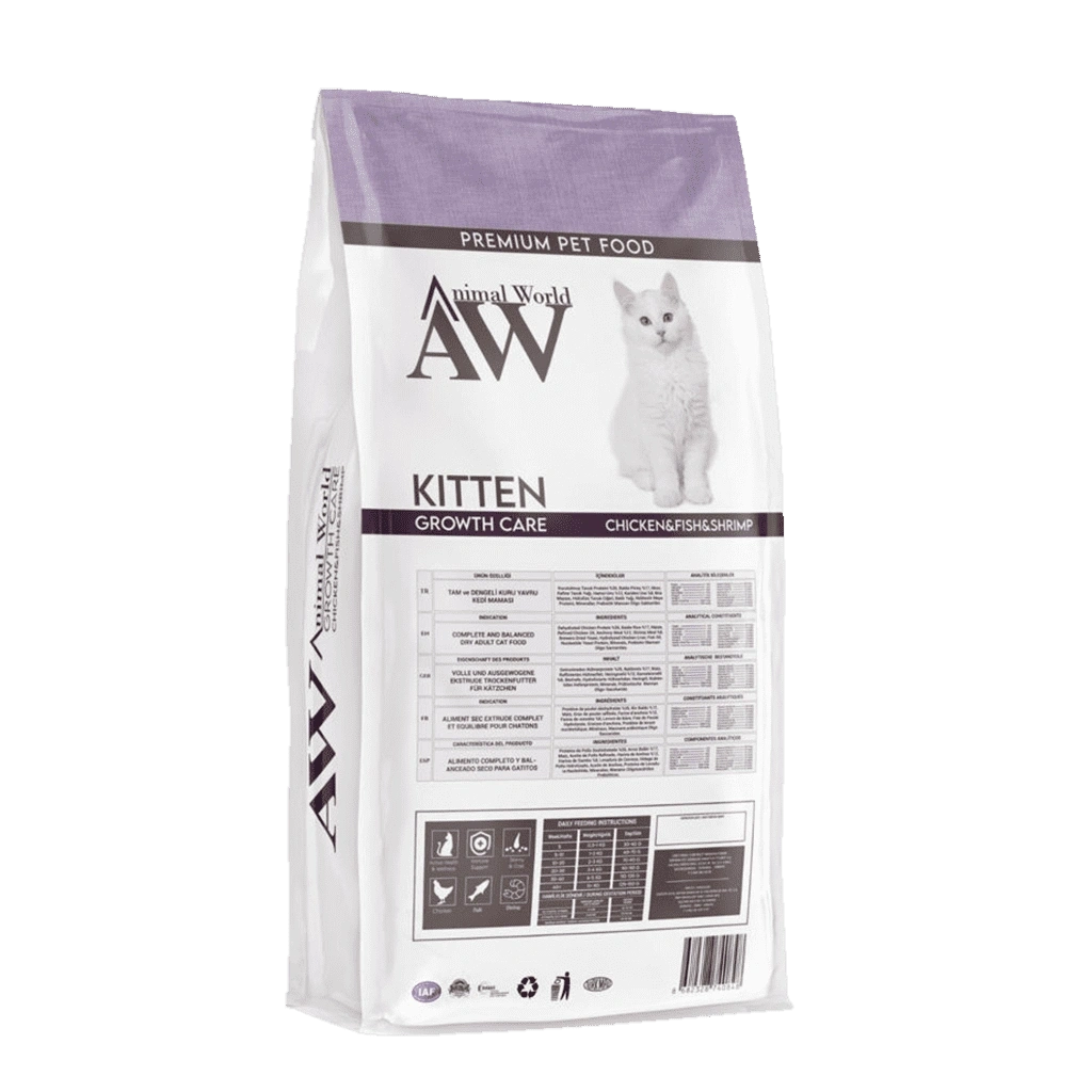 Animal World Yavru kediler için farklı lezzetlerin bilimsel formülle harmanlanmıştır. Animal World Mamaları, içeriğinde bulunan zengin besin değerleri ve yüksek protein oranı sayesinde dostlarınız keyif dolu iştahla yeme keyfi sunan bir mamamızdır. Keyifli anlarıyla birlikte sizlerde keyifle onları izleyeceğiniz dostlarınızla keyif dolu vakit geçireceğiniz kedi mamaları üretir. Animal World kedi ve köpek mamaları içeriğindeki doğal bileşenlerle dostunuzun doğal beslenmesini sağlar. Sindirim sistemi sorunlarının önüne geçer. Hassas ciltli, hassas mideleri dostlarınızın güvenle ve iştahla yemesini sağlar. Yavru kedilerin günlük tüm besin ihtiyaçlarını karşılayacak şekilde özel tasarlanmış kedi mamasıdır. Bilimsel formül %100 doğal içerik, tüm yavru kediler için dengeli ve sağlıklı beslenme sağlar. Yüksek lezzet oranı, özel tane büyüklüğü, yoğunluğu ve şekli ile sindirim sistemi için stressiz bir beslenme. Animal World yavru kedi maması kedinizin yaşam fonksiyonlarına göre hazırlanmıştır. Mama seçimi yaparken yaş, kilo, aktivite ve kısır oluşlarına göre seçim yapınız. Kedi mamaları üretiliş tekniklerinden dolayı son kullanma tarihine kadar tazeliklerini koruduğundan son kullanma tarihini kontrol ediniz. Kuru mama ile beslenen kedilerde su gereksinimi ıslak mama ile beslenen kedilere nazaran daha fazla olduğunu unutulmamalıdır. Bu sebeptendir ki kuru mama ile mutlaka temiz su bulundurunuz. Konserve mama ile karışık beslemede kuru mama miktarını lütfen azaltınız. Mama yedirme miktarları kişisel olarak değişim göstermekle birlikte paket üzerindeki genel besleme miktarlarını kontrol ediniz. Kuru mamanızı açıldıktan sonra böcek ya da karıncaya karşı korumalısınız. Tavsiyemiz ayrı bir mama saklama kovasında ağzı kapalı muhafaza etmenizdir.