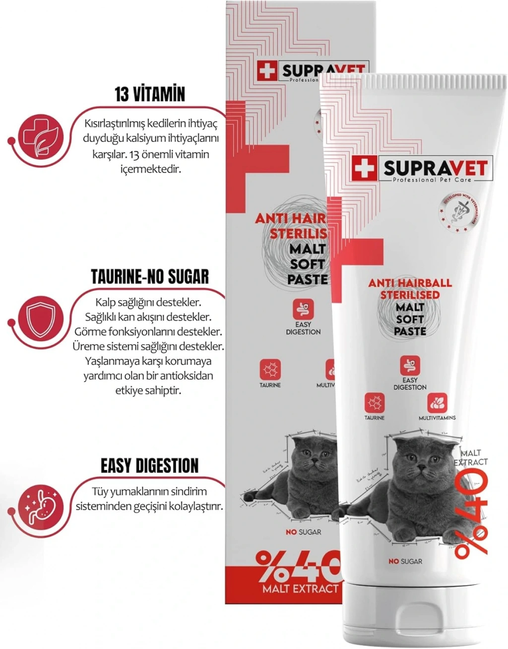 Supravet Hamile Ve Yavru Kediler Için Kalsiyum Ve Taurinli Multi Vitamin Kedi Macunu 100 Gr. (%57 Extra Malt)