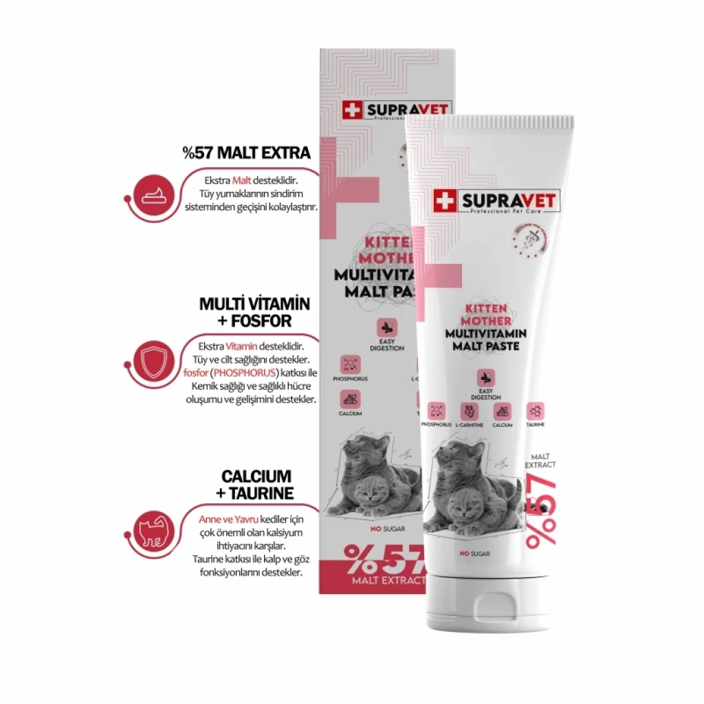 Supravet Hamile Ve Yavru Kediler Için Kalsiyum Ve Taurinli Multi Vitamin Kedi Macunu 100 Gr. (%57 Extra Malt)